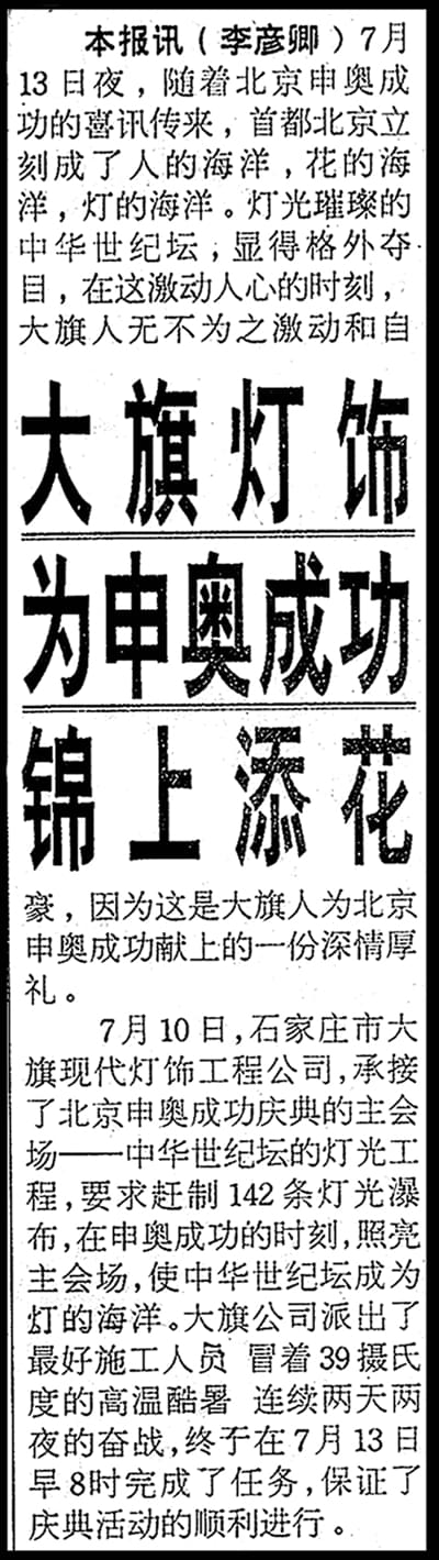 石家莊日報:北京大型現代燈飾出自“大旗”能工巧匠之手